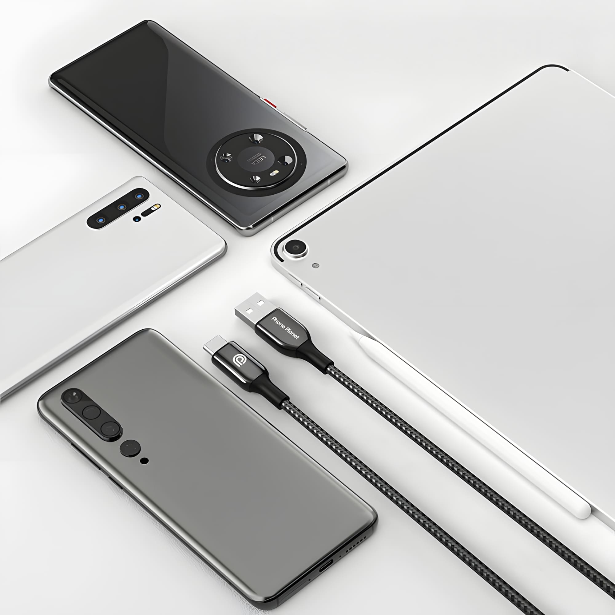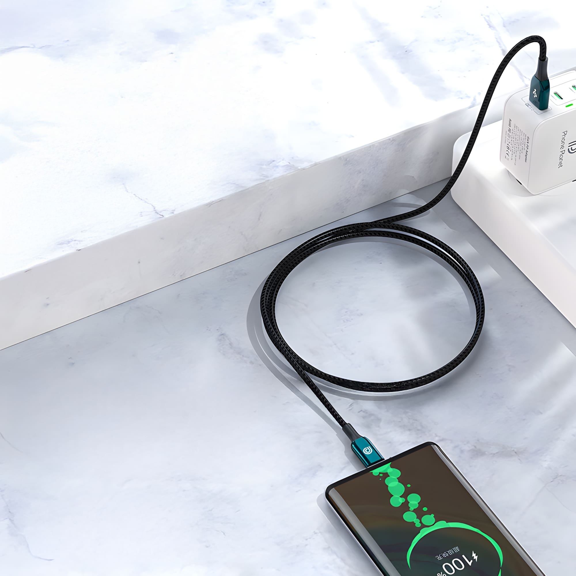 Robustes USB-A auf USB-C Kabel mit Zinklegierung, 480 Mbit/s Datenrate und 18 W Schnellladung – stylisch in vier Farben.