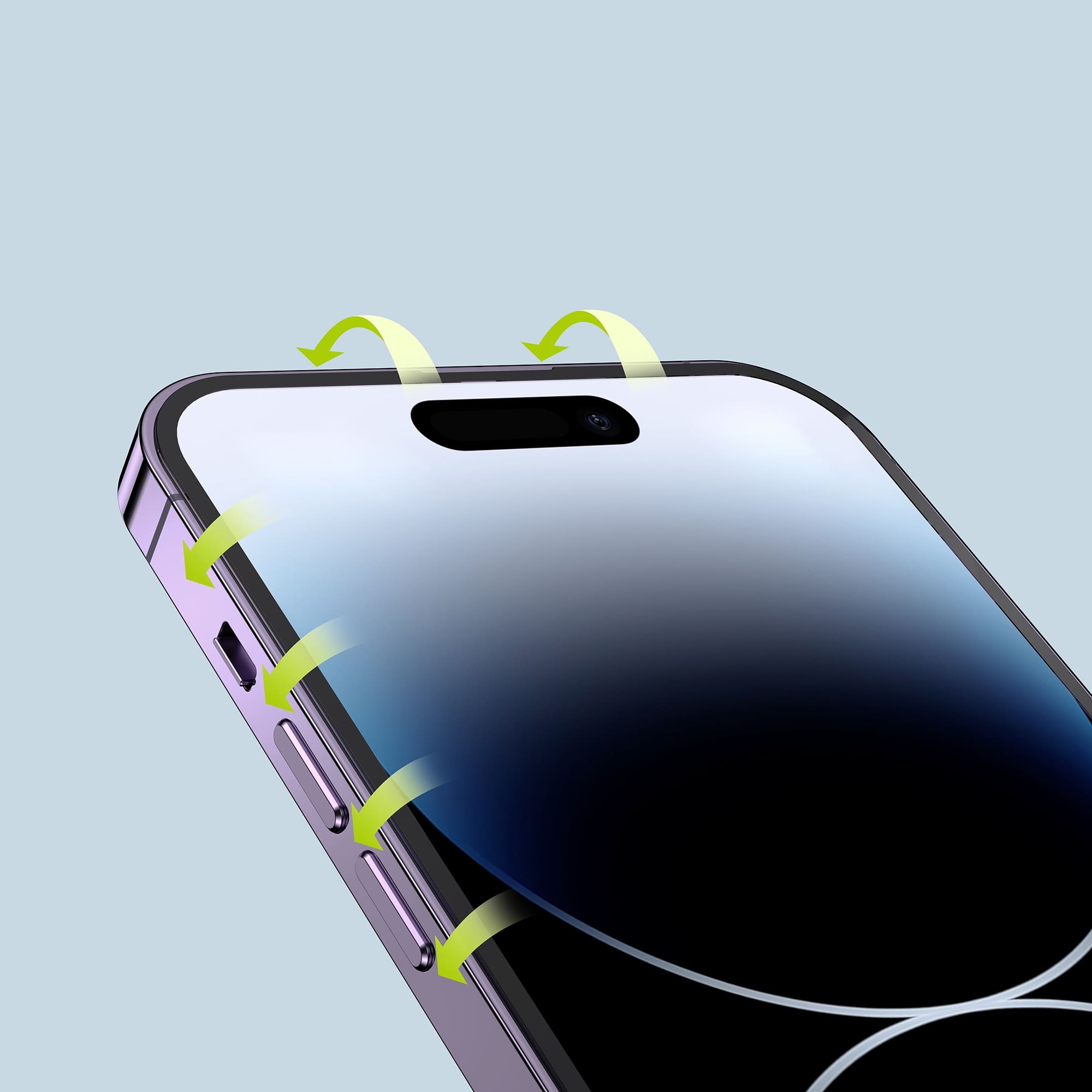 Extrem robustes Displayglas mit 9H-Härte – schützt Dein iPhone 15 zuverlässig vor Kratzern, Schmutz und Fingerabdrücken.